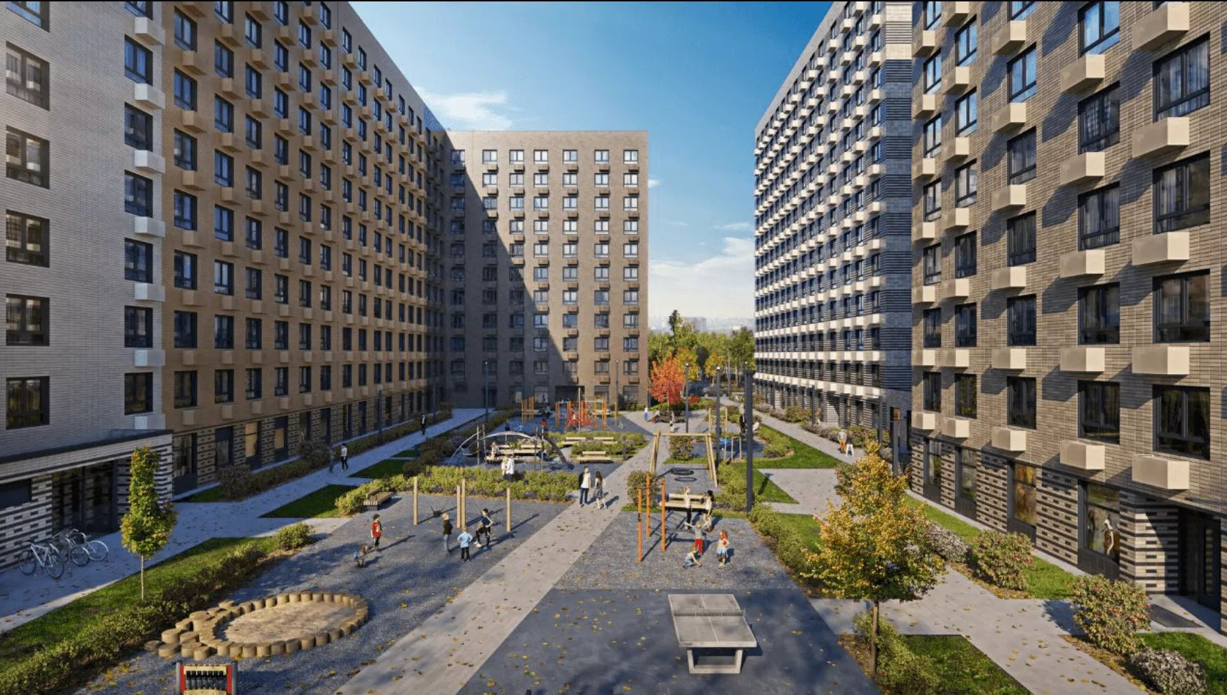 Расположение домов в «Витебском парке» и расстояние между ними подобраны так, чтобы во дворы и в каждую квартиру попадало как можно больше солнечного света.