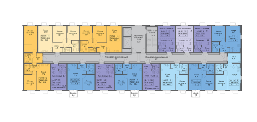 Общая площадь 56.9 м2