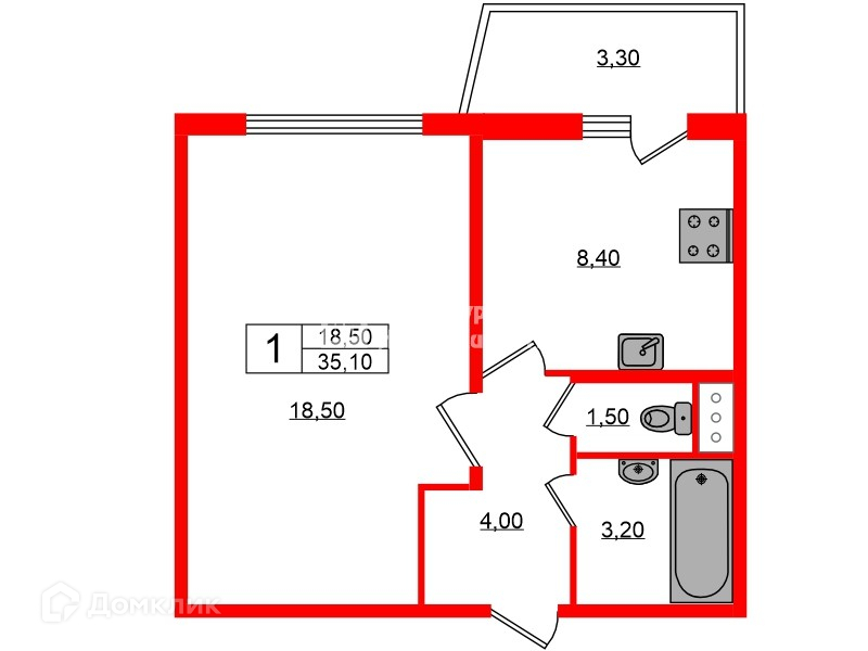 Общая площадь 35.1 м2