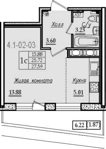 Общая площадь 28 м2