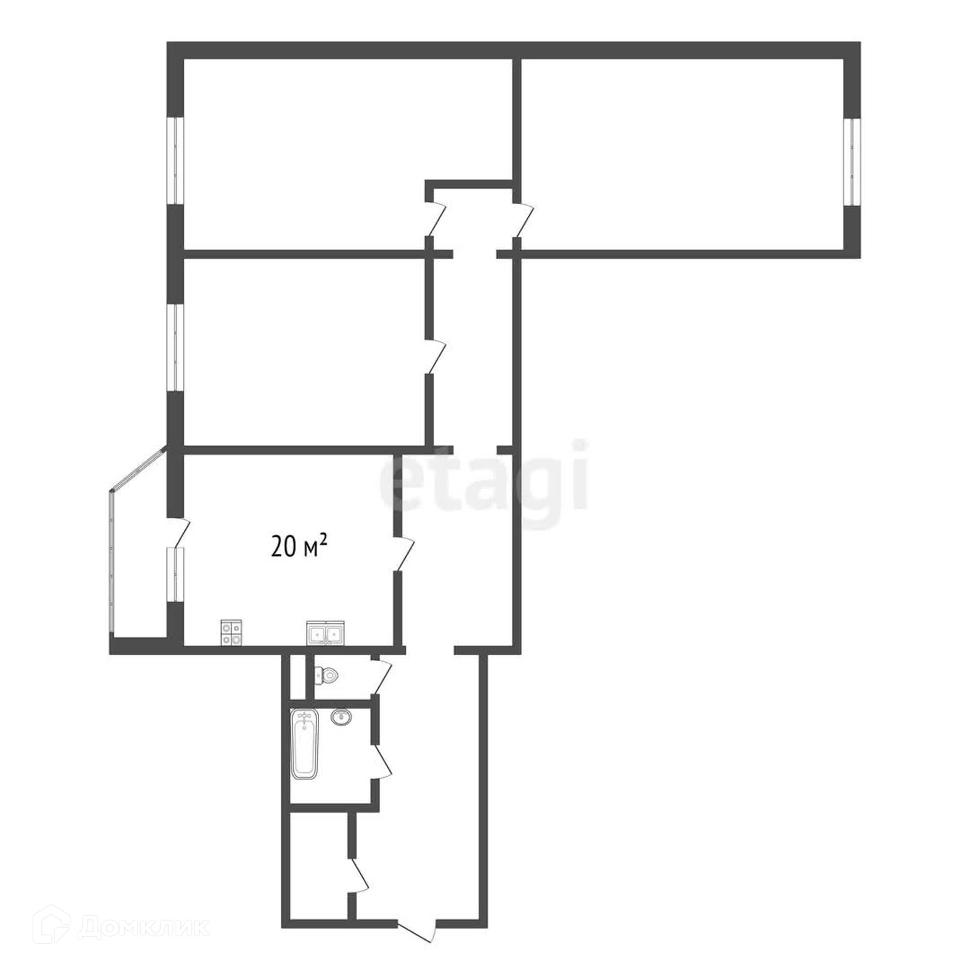 Площадь кухни 20 м2