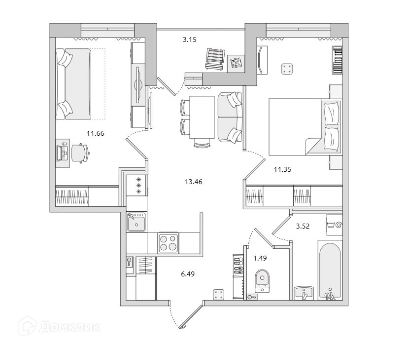 Жилая площадь 23.1 м2