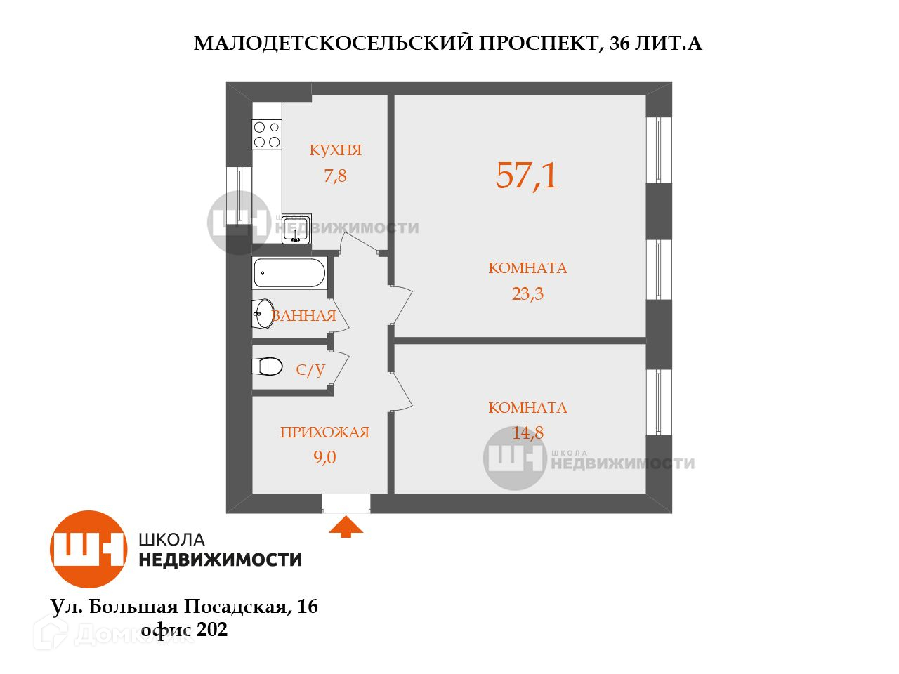 Общая площадь 57.1 м2