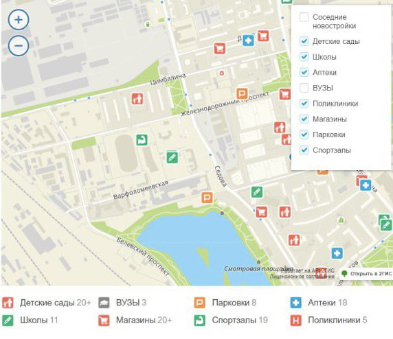 магазины первой необходимости, сады, школы. Прекрасный Ивановский карьер для прогулок и занятий спортом, парк им. Бабушкина с развлечениями для детей.