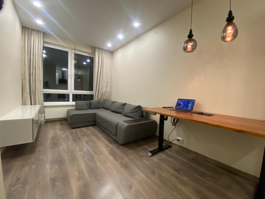 В квартире выполнен качественный ремонт: пол ламинат, санузел в плитке, потолок натяжной. Есть кондиционер, в квартире есть все для комфортного проживания!!!