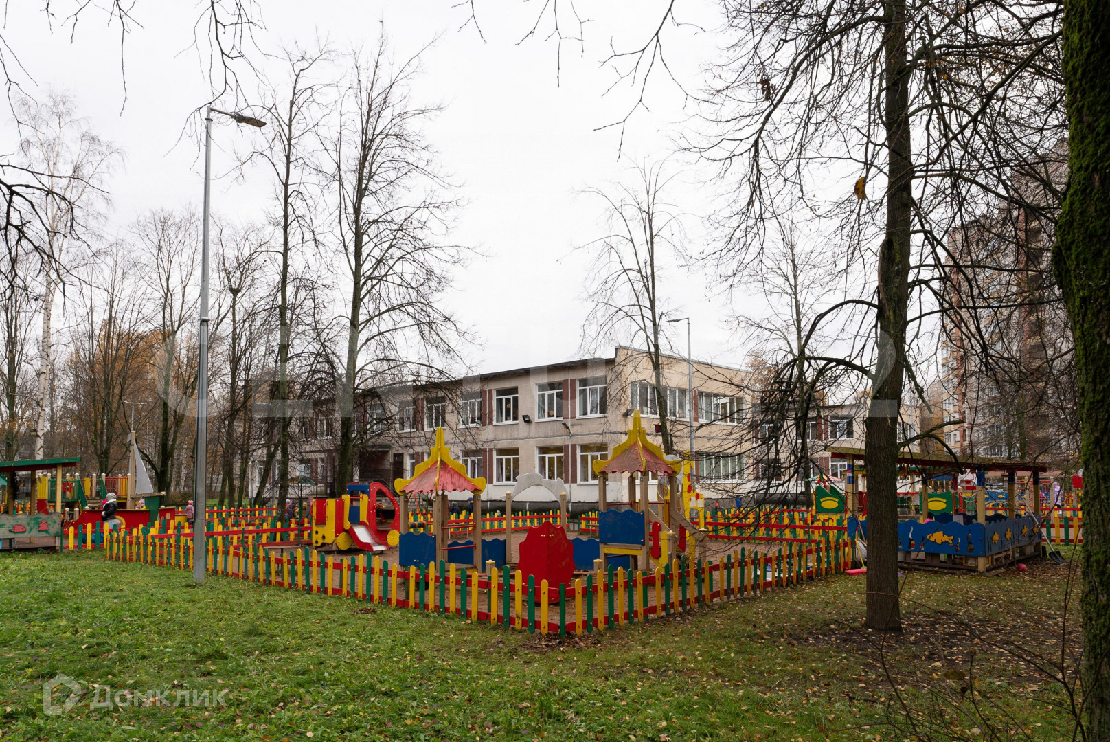 Во дворе современная детская площадка.