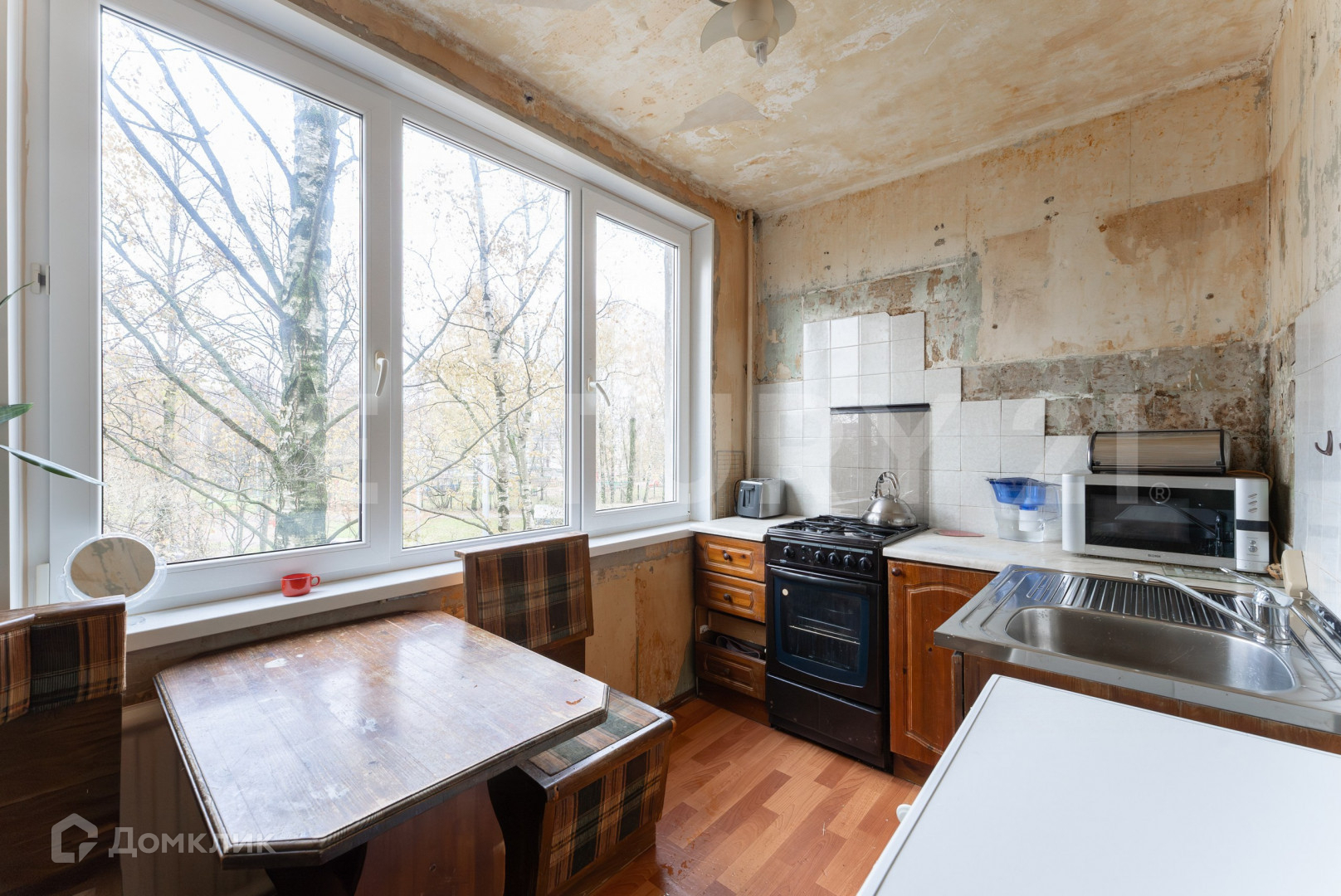 Окна выходят в зеленый двор с детским садом - открыв окна, можно наслаждаться радостным детским смехом.