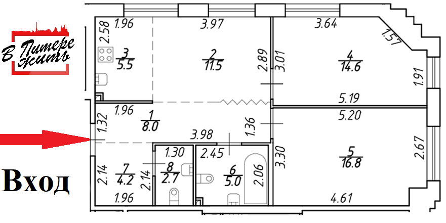 Общая площадь 68.3 м2