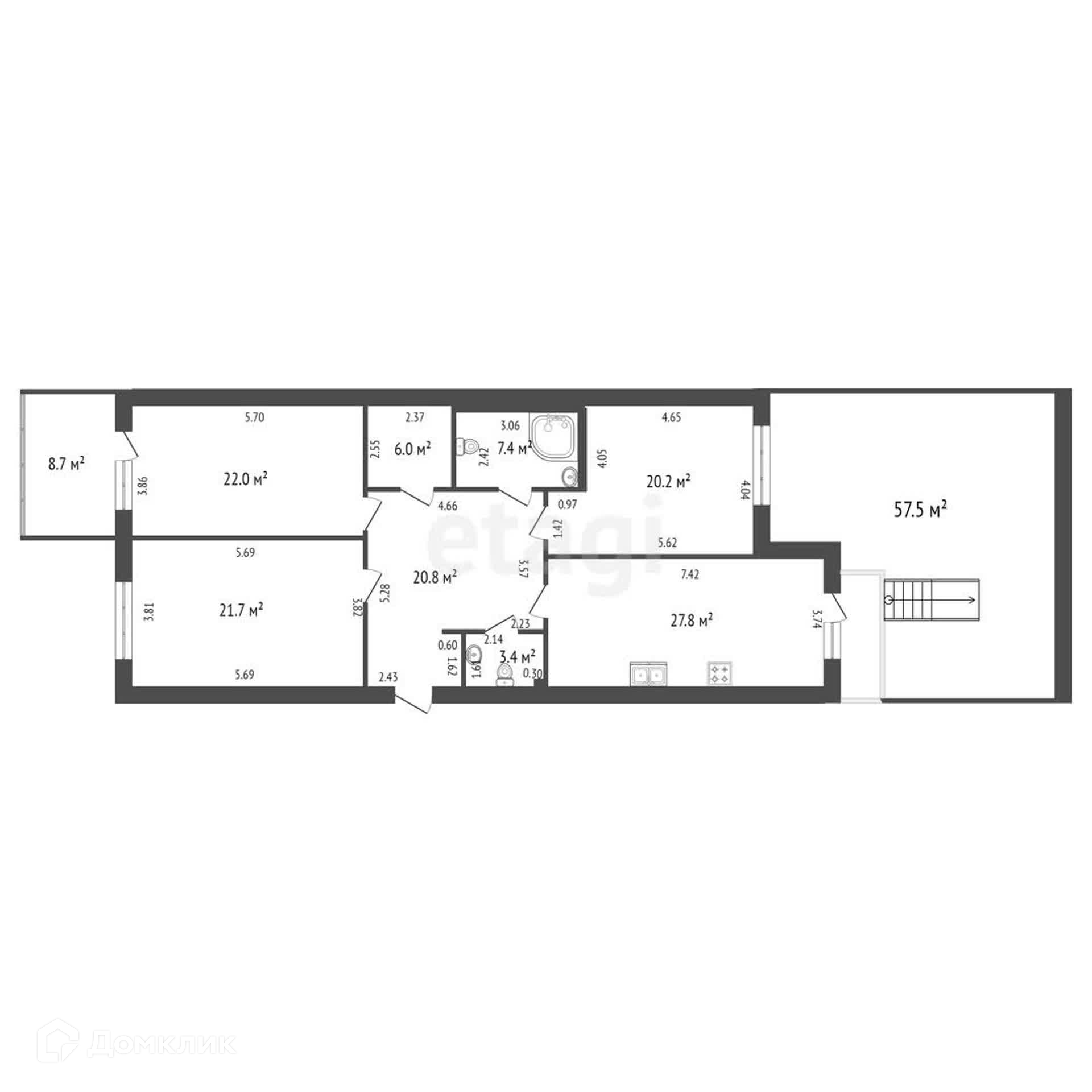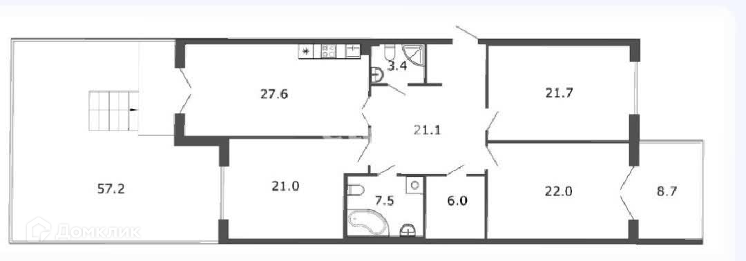 Квартира с террасой 57 кв.м в жк премиум класса Привилегия. Кухня-гостиная 27 кв.м и три изолированные комнаты, два санузла, гардеробная.