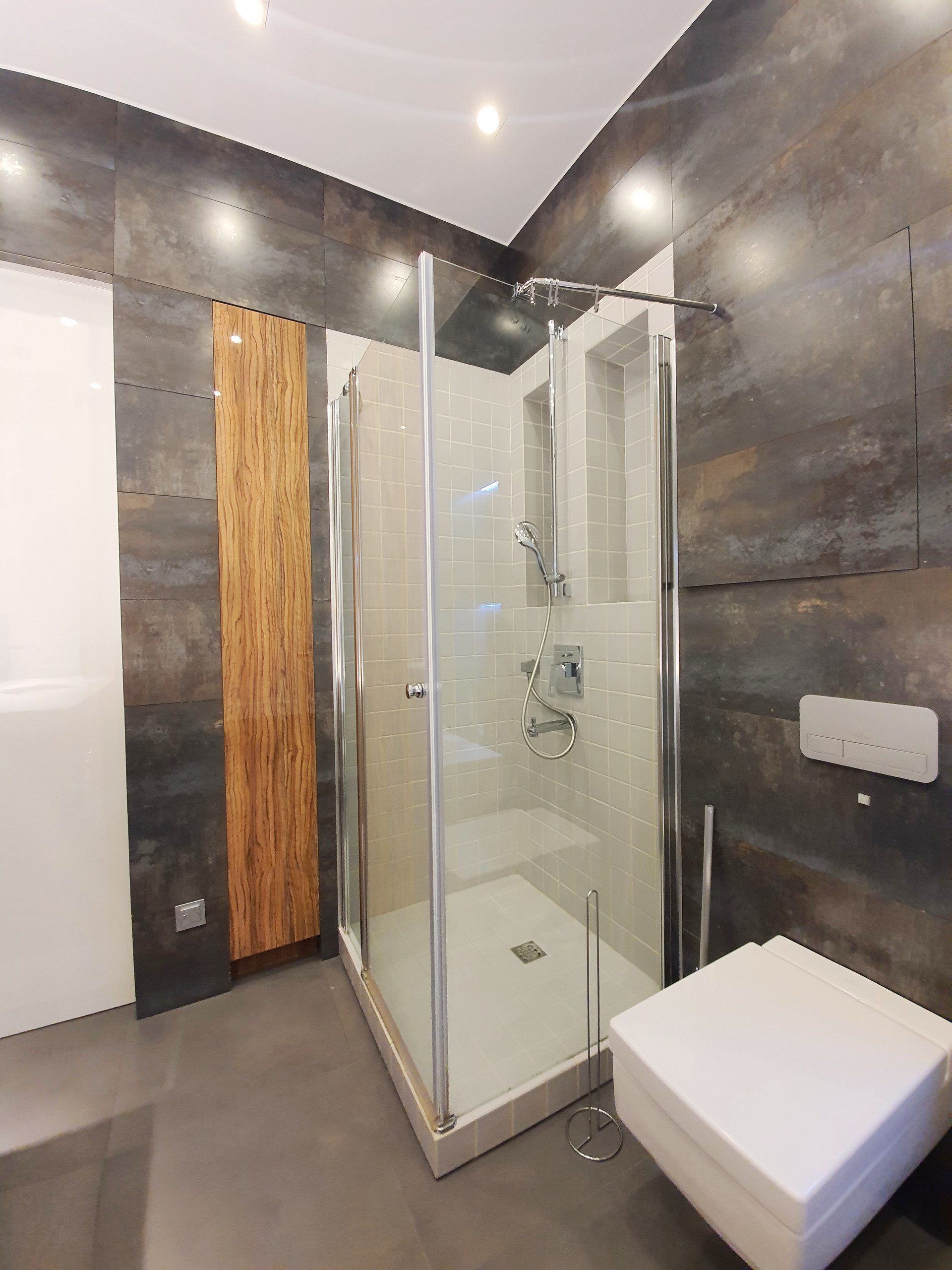 В просторном санузле имеется душевая кабина и ванна.