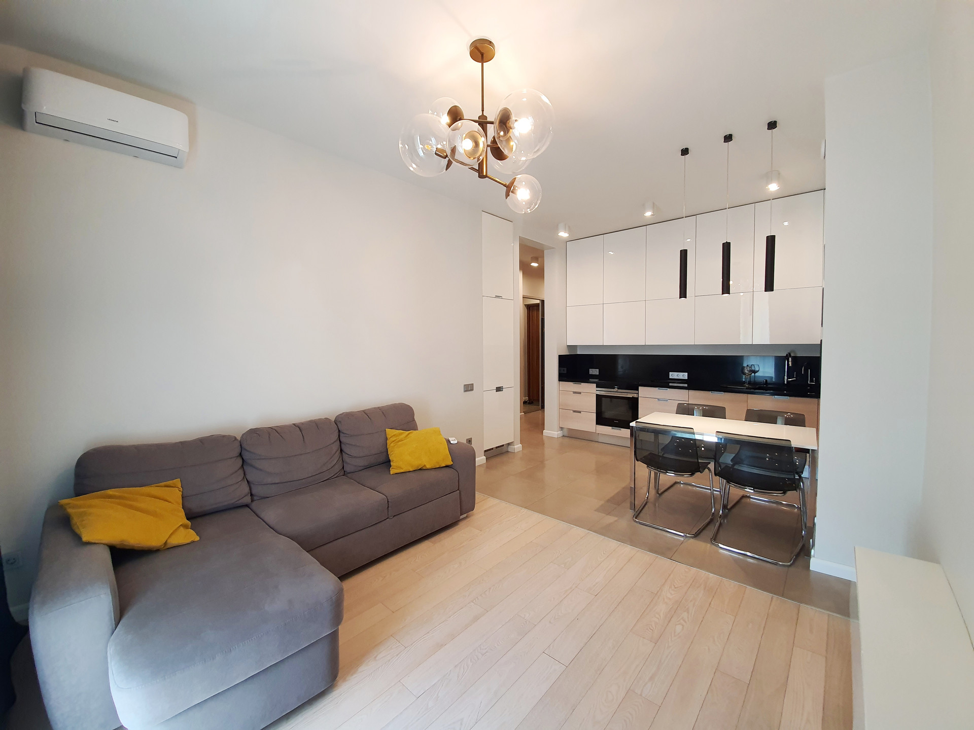 В квартире произведен ремонт под руководством дизайнера с применением высококачественных материалов и премиальных марок мебели и техники.