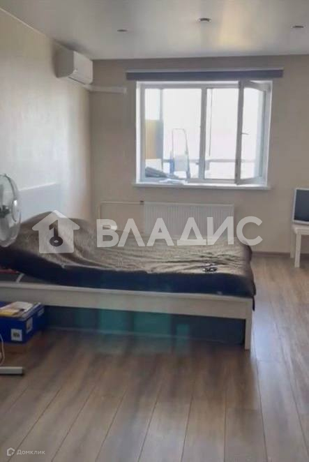Квартира с современной отделкой. Комната: просторная, потолки достаточно высокие (оштукатурены и выкрашены в белый цвет), на стенах декоративная штукатурка светло - бежевого цвета, окна выходят на лоджию, на полу - ламинат, качественная межкомнатная дверь и новый радиатор. В комнате имеется большая деревянная кровать.