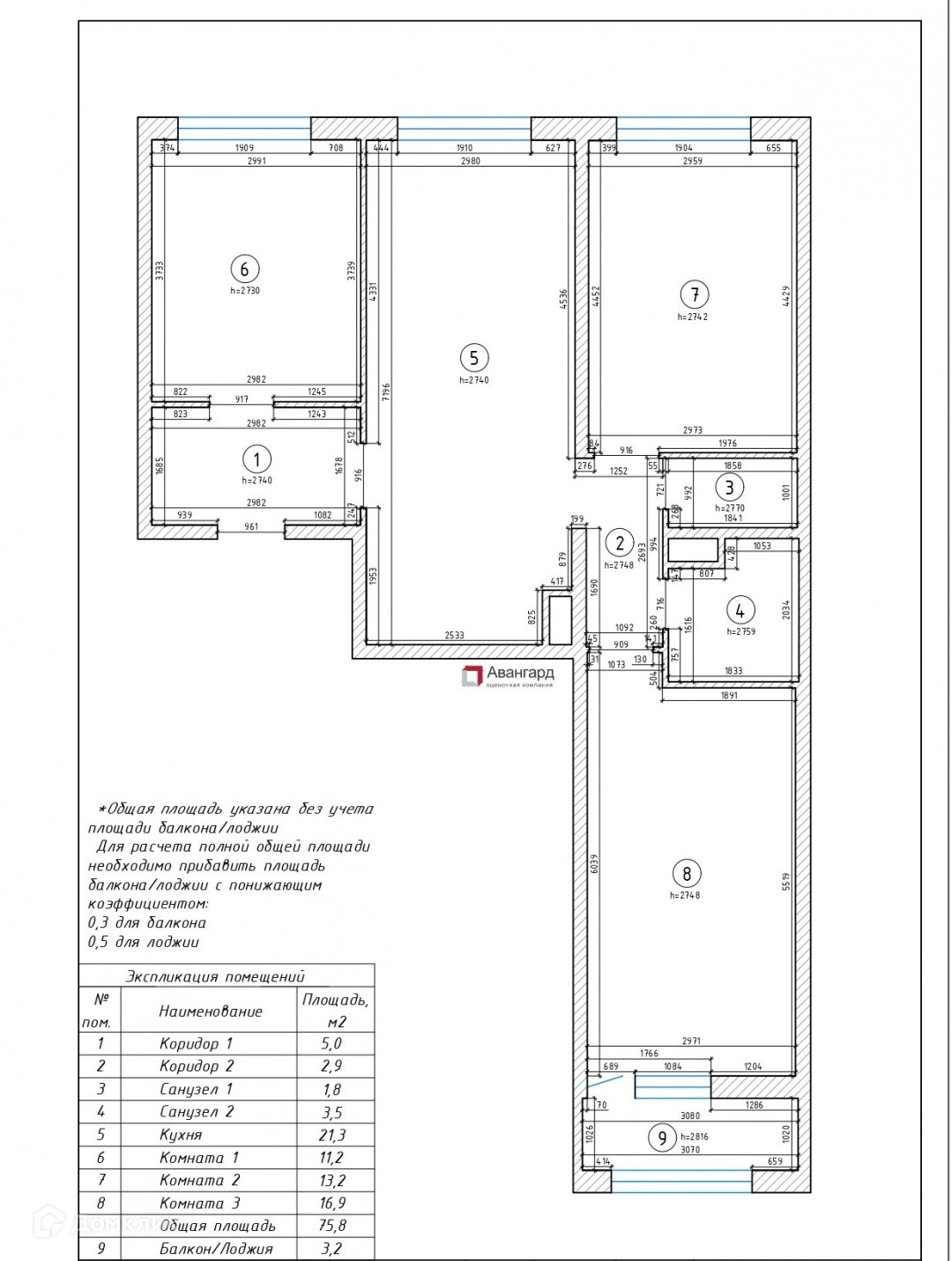 Общая площадь 75.8 м2