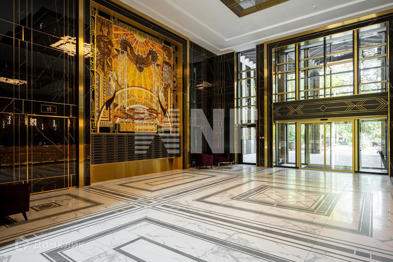 «Институтский, 16» - архитектурное воплощение голливудской роскоши. Первый и единственный в Петербурге высотный дом в стиле ар-деко. Архитектура проекта от знаменитой студии «Евгений Герасимов и партнеры». Вдохновленный башнями Центрального парка Нью-Йорка, уединенный дом в окружении зелени парков напротив Серебряного пруда.  Фасады исполнены в стиле американского ар-деко. Строгие вертикальные линии, чёрный и золото, керамика и стекло, растительные и животные орнаменты. Главный вход в здание оформлен эффектным атриумом из колонн и стекла, усиливая торжественность входа. Парадный холл проекта «Институтский, 16» реализован в стиле ар-деко. В отделке использованы глянцевый черный мрамор, песочный травертин, теплый оникс, классическое золото, зеркальные фрагменты в сочетании со вторым светом. Парадный вестибюль украшает мозаичное панно из смальты. Образы и символы на панно раскрывают ценности дома: сова как символ мудрости, ящерица – символ возрождения, солнце – символ власти и энергии. Удлиненные лифтовые порталы, панорамное остекление. Закрытый двор дома «Институтский, 16» вдохновлен работами великого архитектора Фрэнка Ллойда Райта, создателя концепции «органической архитектуры», образующих единство с природой. Беседки и навесы с широкими козырьками создают приватные зоны. Красивый дизайн ландшафта идеально дополняет дом. Двухуровневый подземный паркинг.