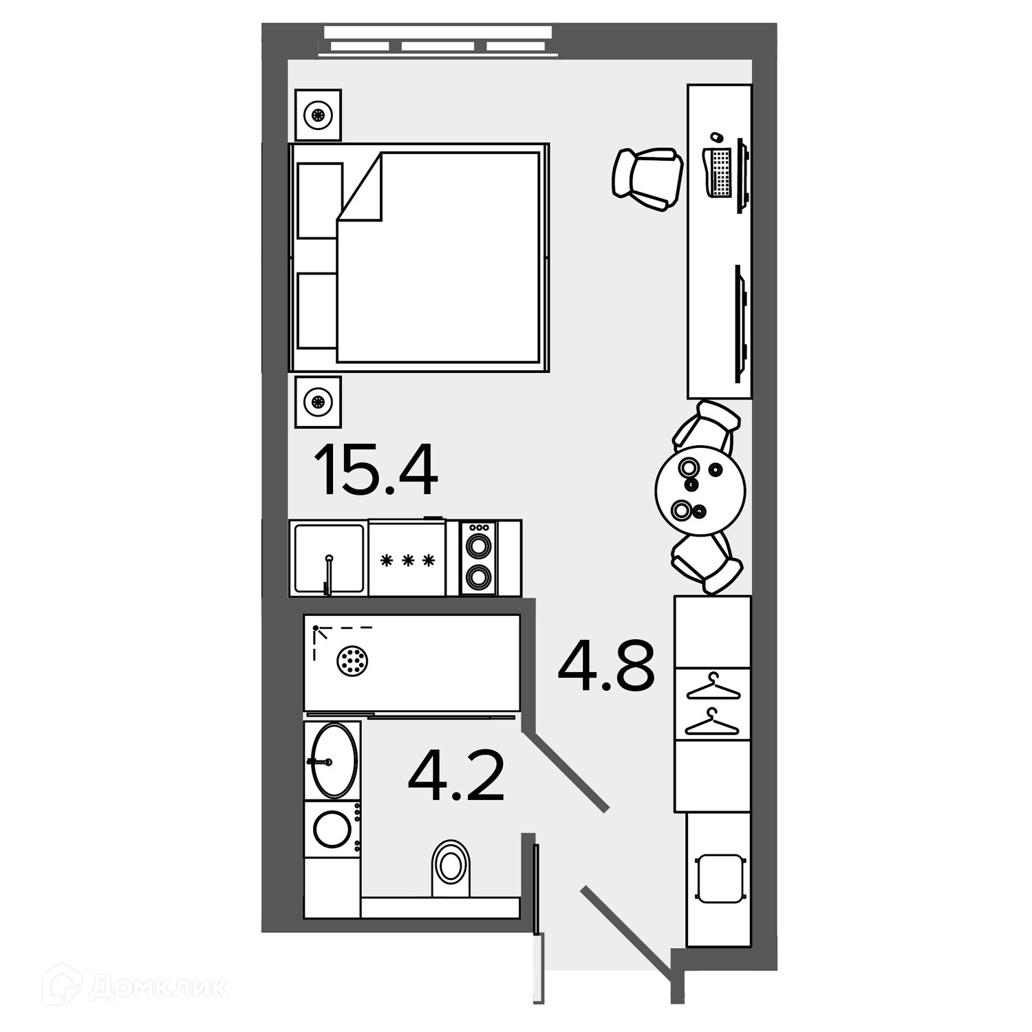 Жилая площадь 15.4 м2