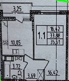 Общая площадь 35.5 м2