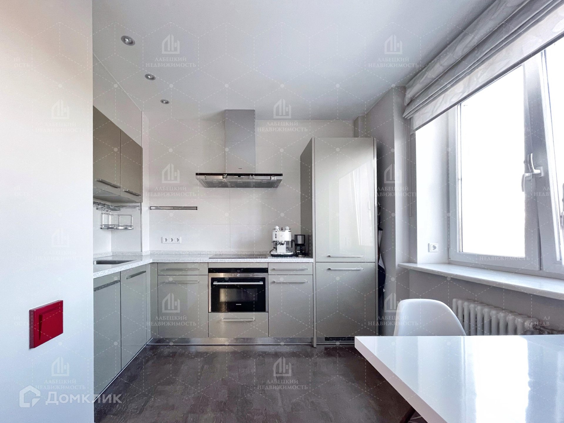 Из коридора Вы попадаете в ПРОСТОРНУЮ кухню (10.54 м²), в которой установлена техника ПРЕМИАЛЬНОЙ линейки Siemens и мебель линейки Sachsen.
