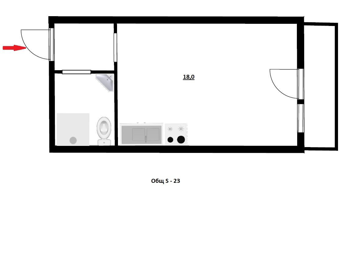 Общая площадь 23.4 м2