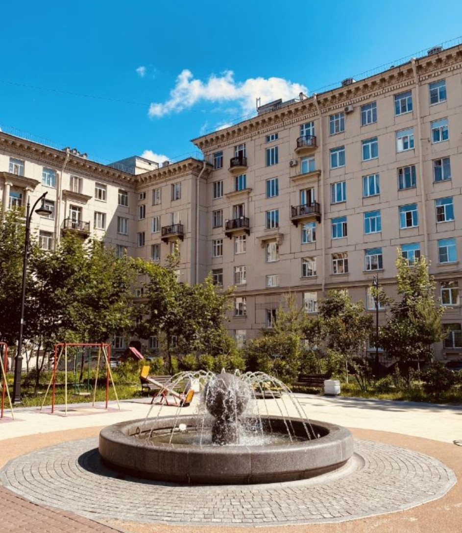 Предлагается к продаже уютная квартира в доме в стиле Сталинского неоклассицизма в самом престижном месте престижного Московского района. В советские времена квартиры в этих домах предоставлялись партийной элите. Вы получаете возможность проживать в тишине и зелени (все окна во двор), но рядом с Московским проспектом. Вид из окна на фонтан во дворе, детскую площадку и зеленый сквер.