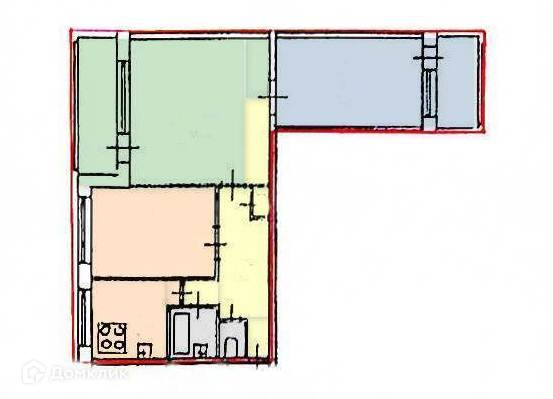 - квартира с легкостью превращается в 3Евро с 2-мя изолированными комнатами и кухней-гостиной или 3ккв со всеми изолированными комнатами за счет 1-2 перегородок (на плане представлен пример зонирования в цвете);