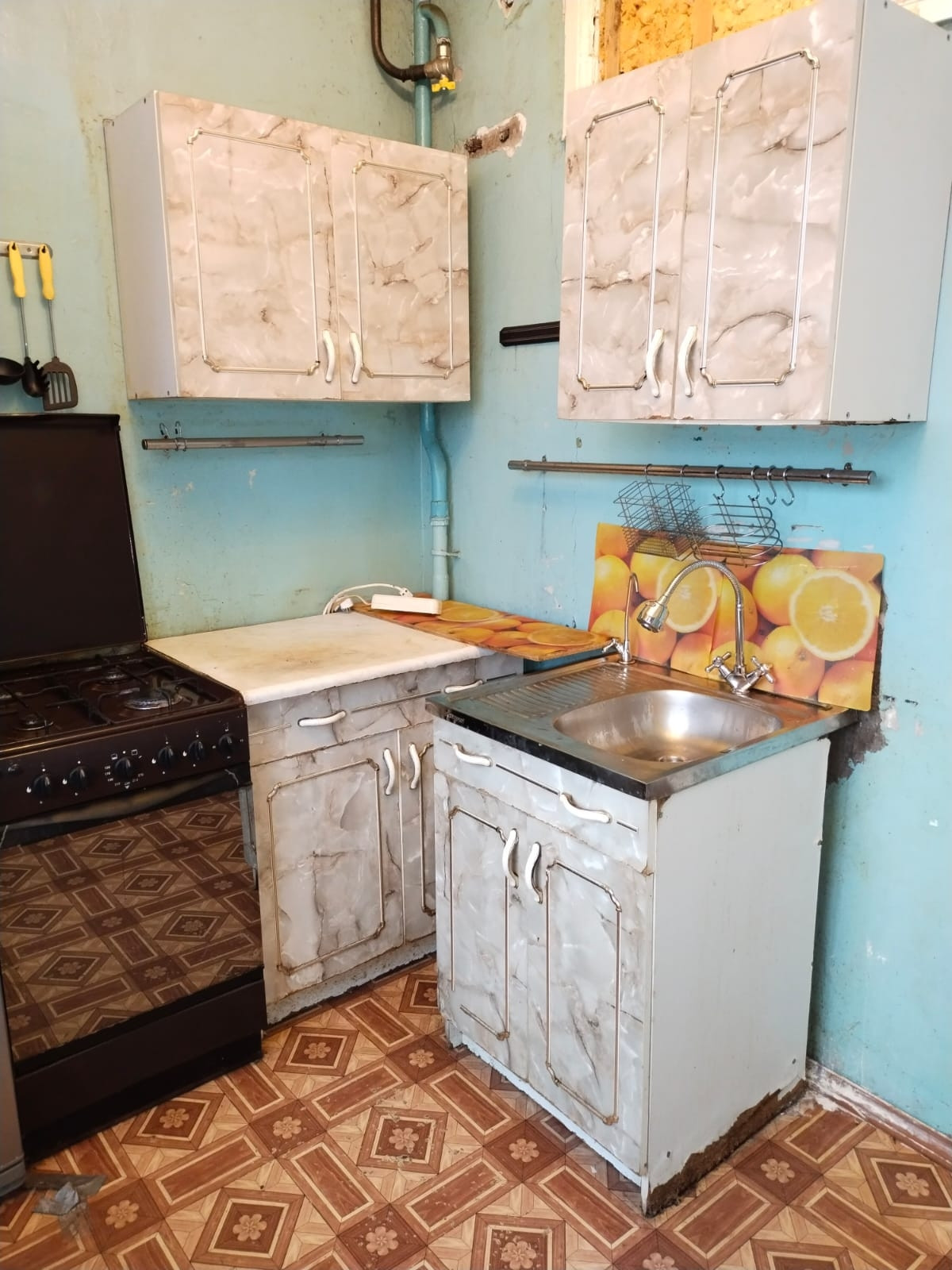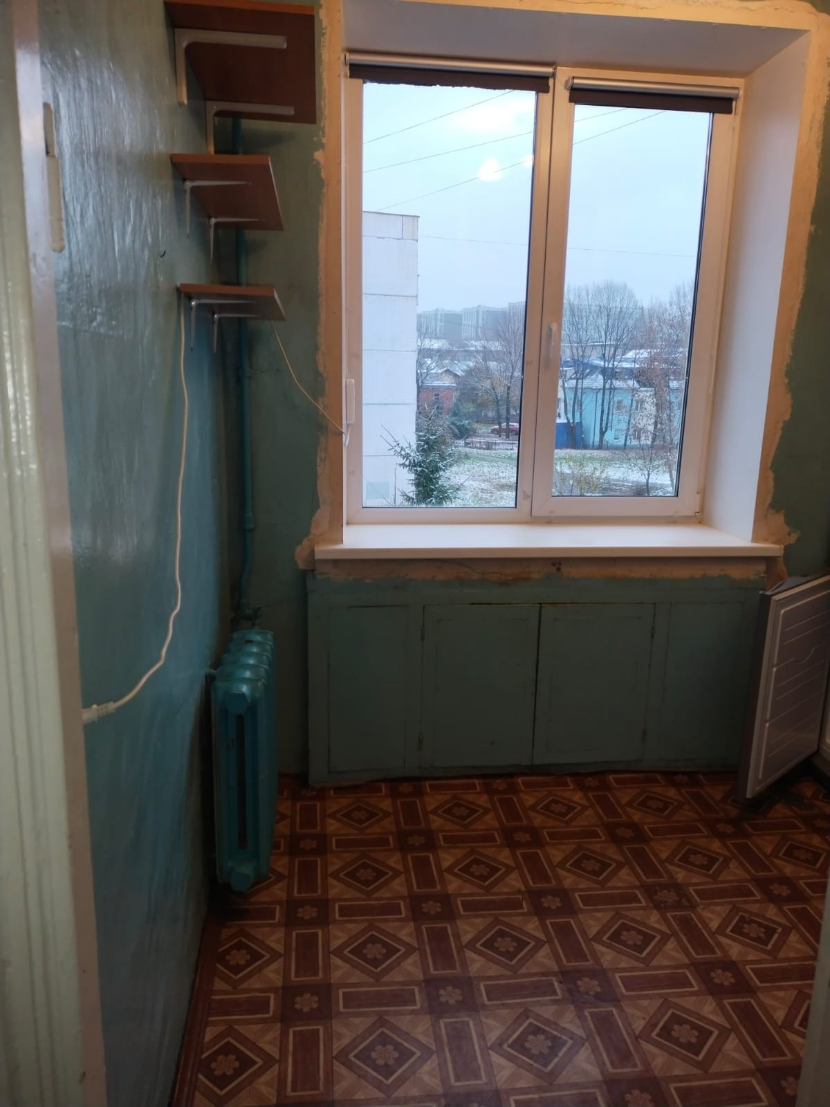 Кухня и коридор нуждаются в ремонте. На полу линолеум.