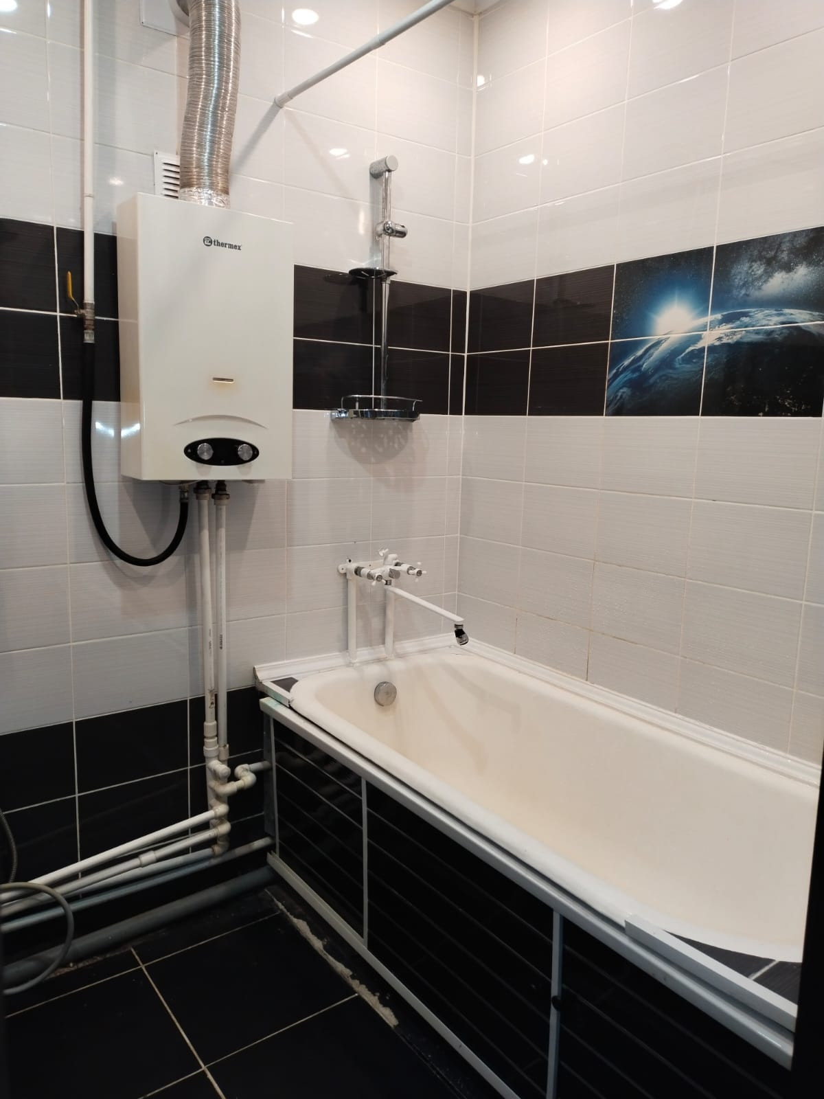В квартире газ, ввод в дом холодной воды, для горячей - колонка. Колонка и газовые трубы также новые.