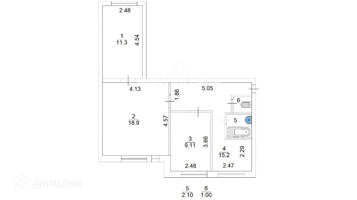 Общая площадь 57.1 м2