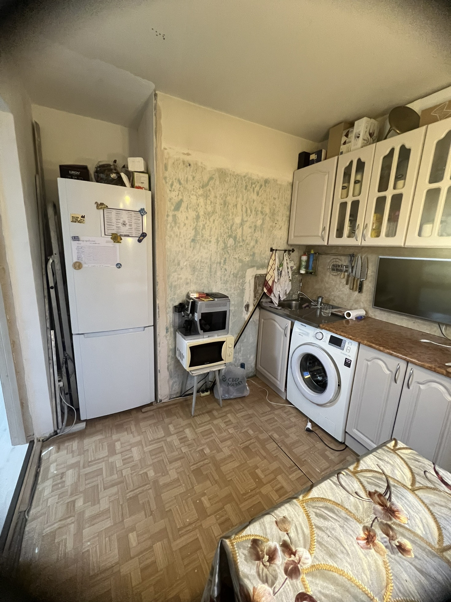 Частично оставим мебель и технику, это обговаривается индивидуально с покупателем квартиры.