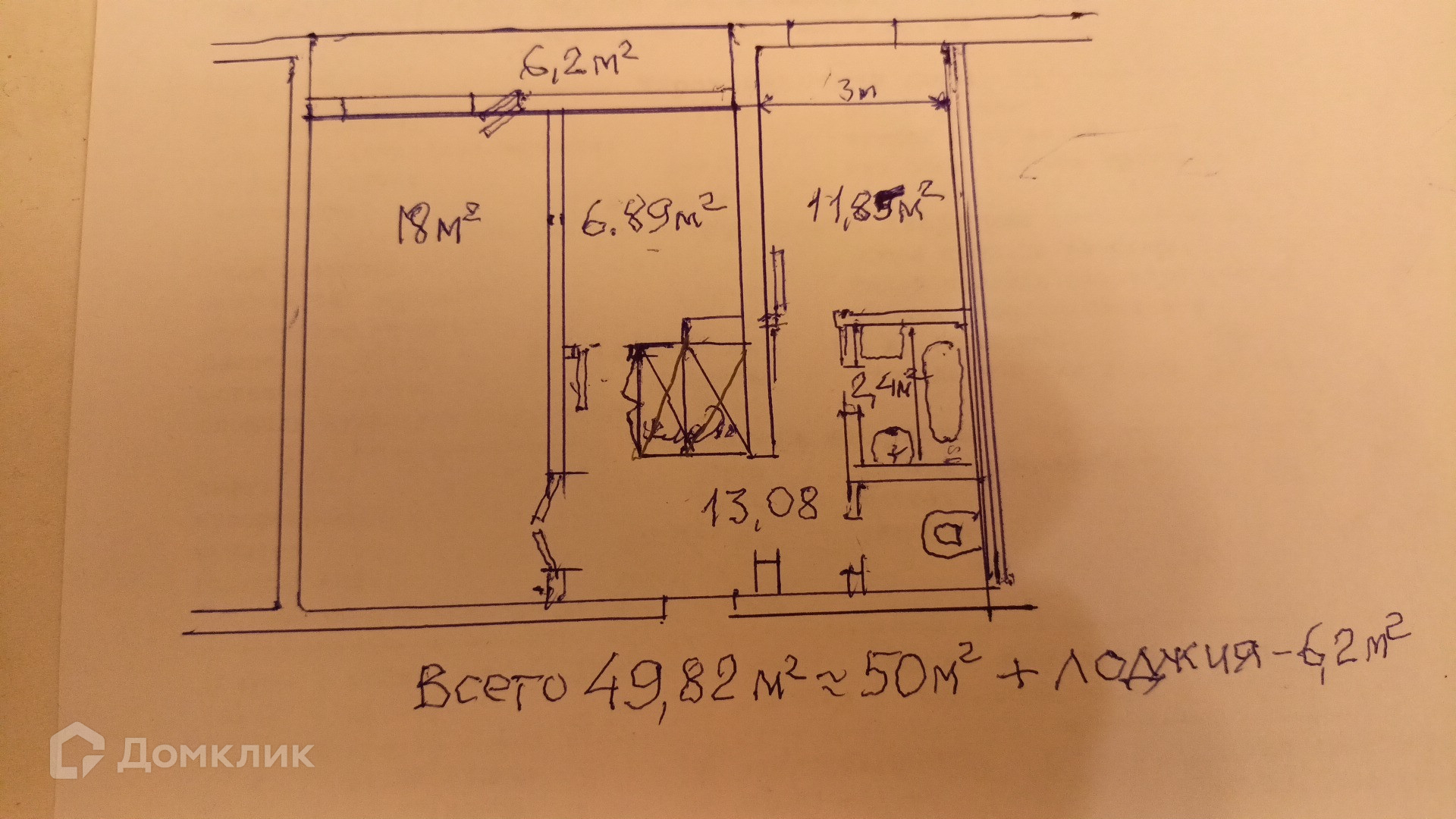 Общая площадь 49.82 м2