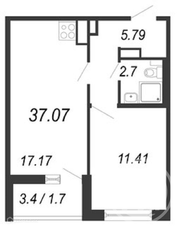Общая площадь 37.07 м2