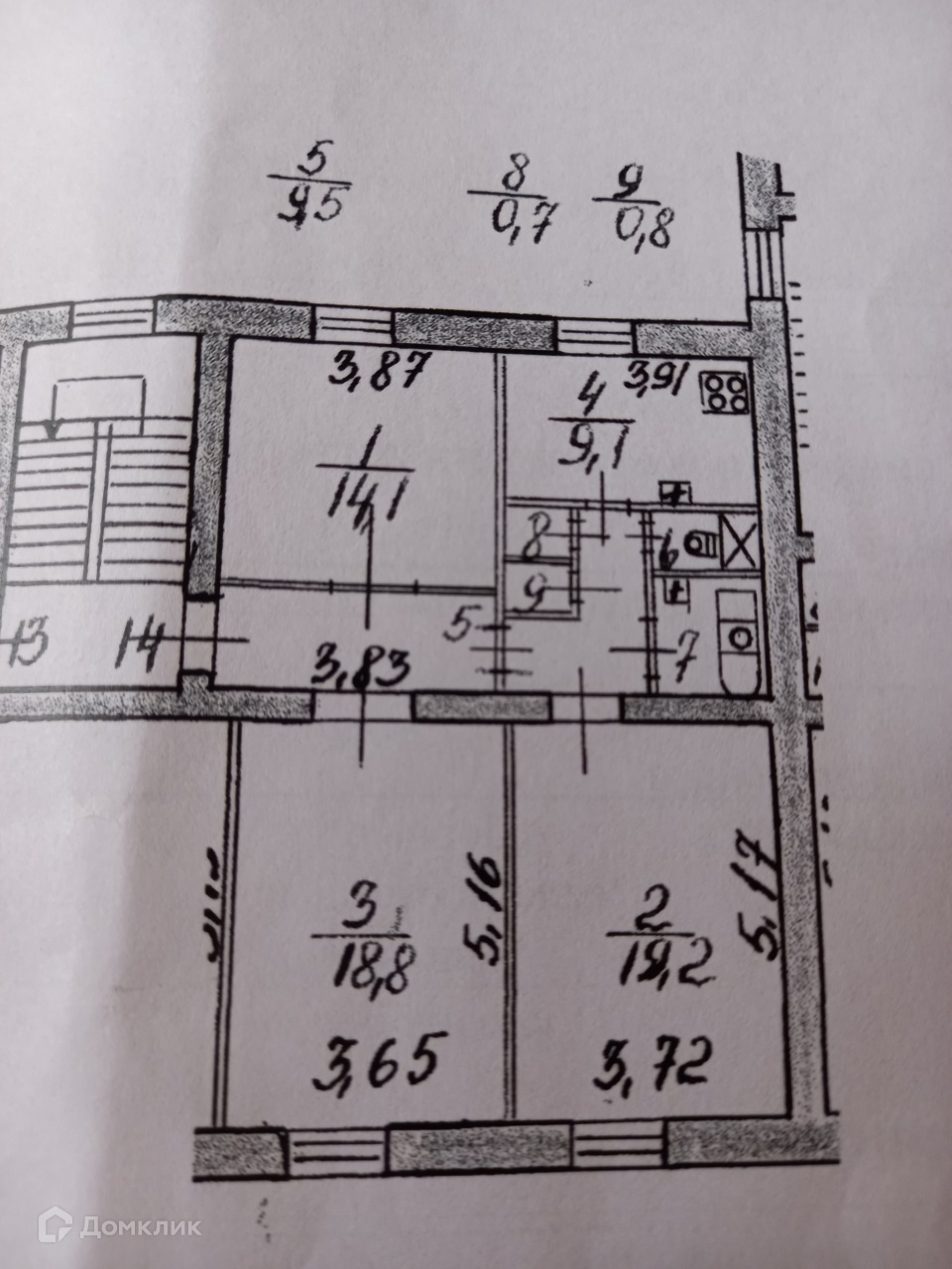 Жилая площадь 52.1 м2
