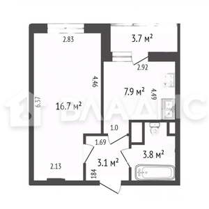 Жилая площадь 16.7 м2