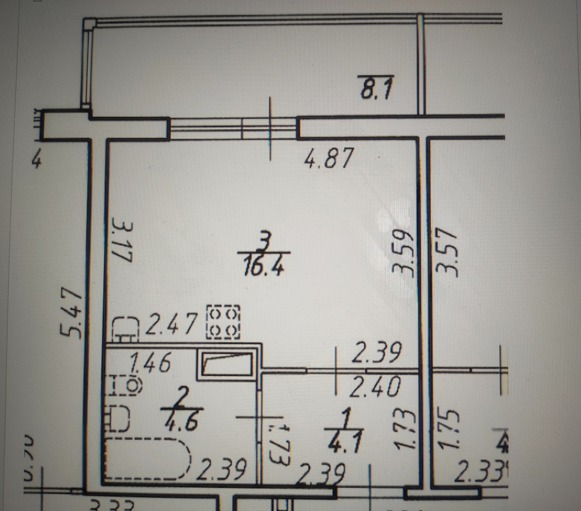 Площадь кухни 3 м2