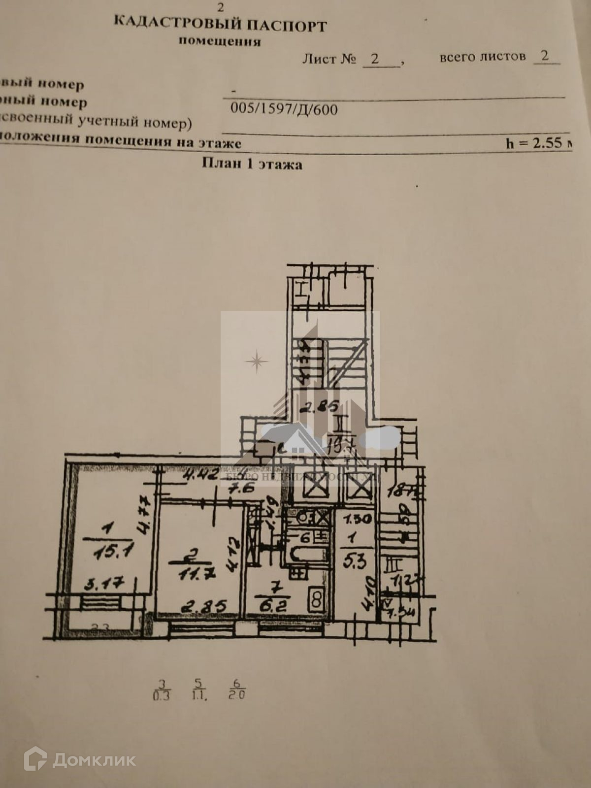 Высота потолков 2.6 м