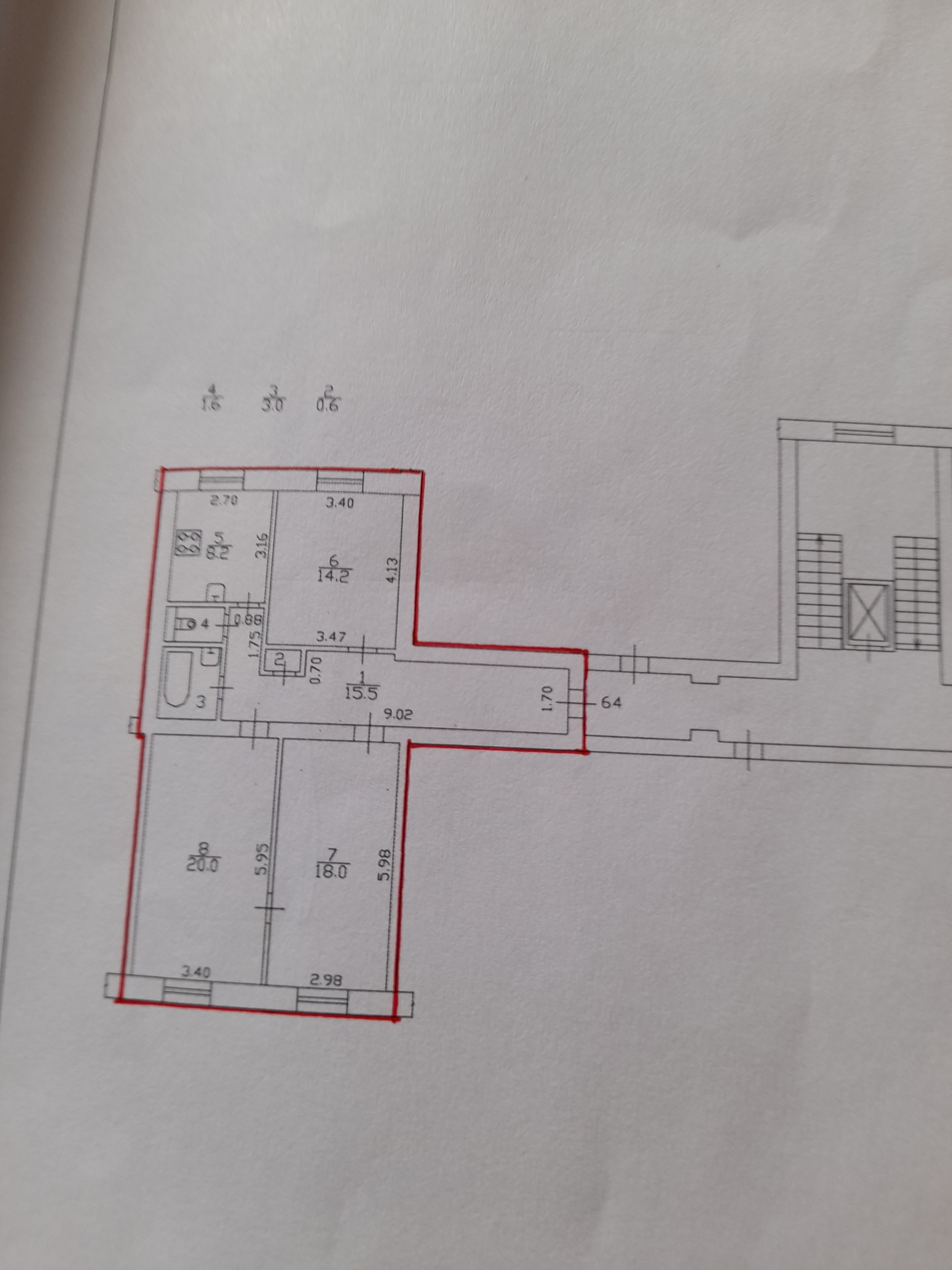 жилая площадь - 20 кв.м. + 18 кв.м.+ 14,2 кв.м.;