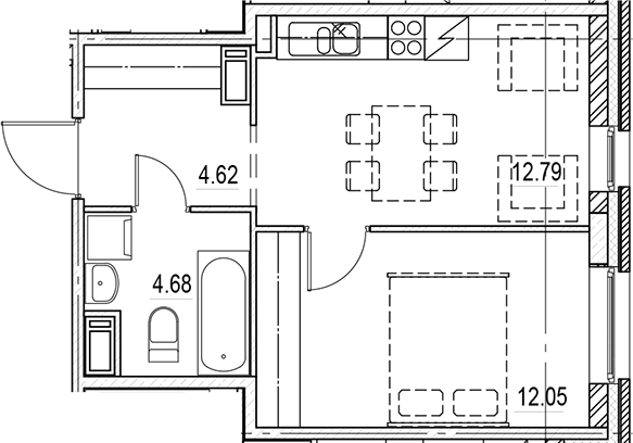 Площадь кухни 12.79 м2