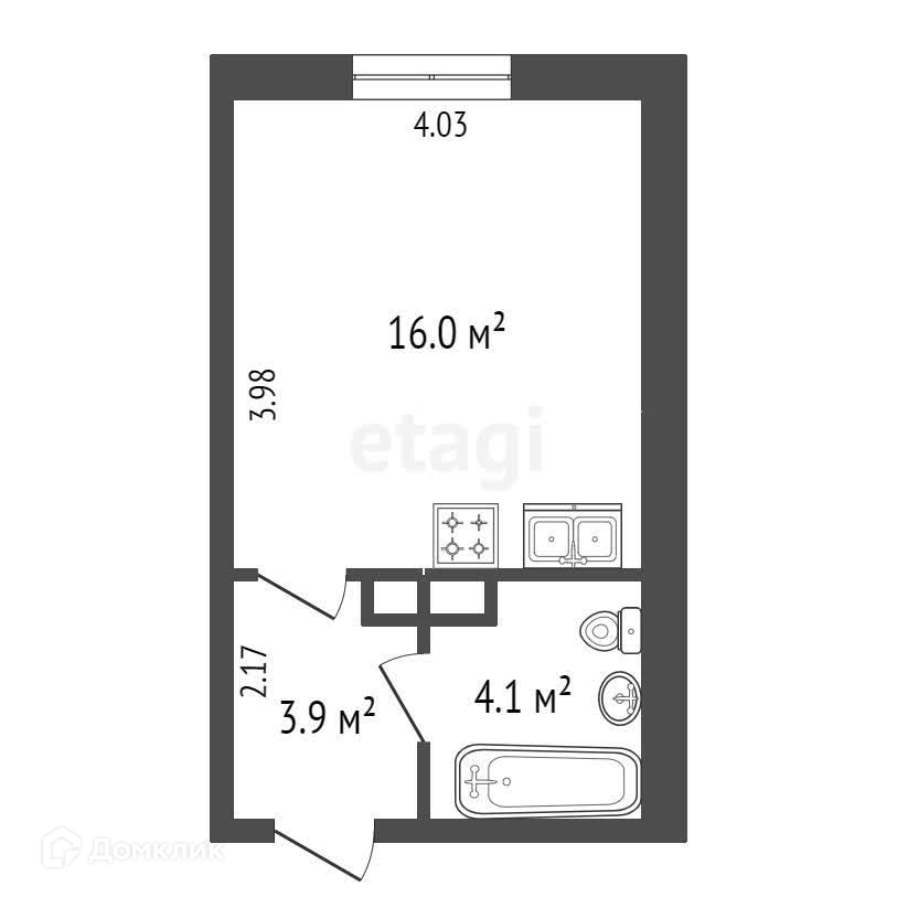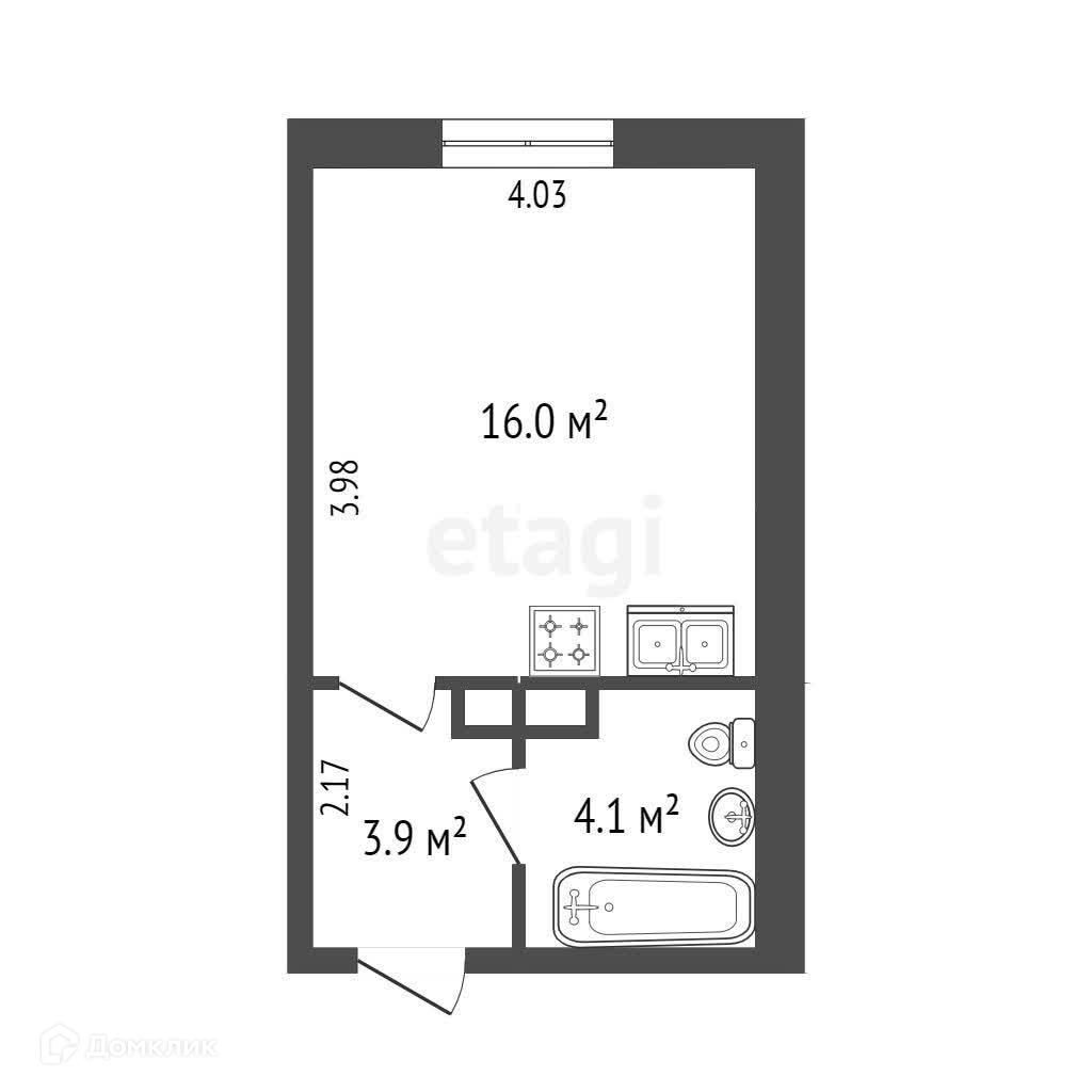 Общая площадь 24.4 м2