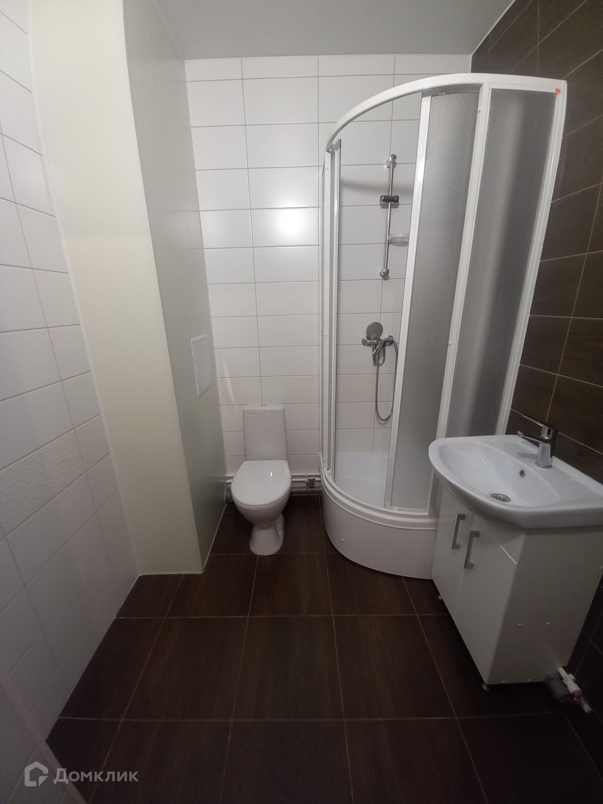 В санузле кафель на полу и стенах и новая сантехника.