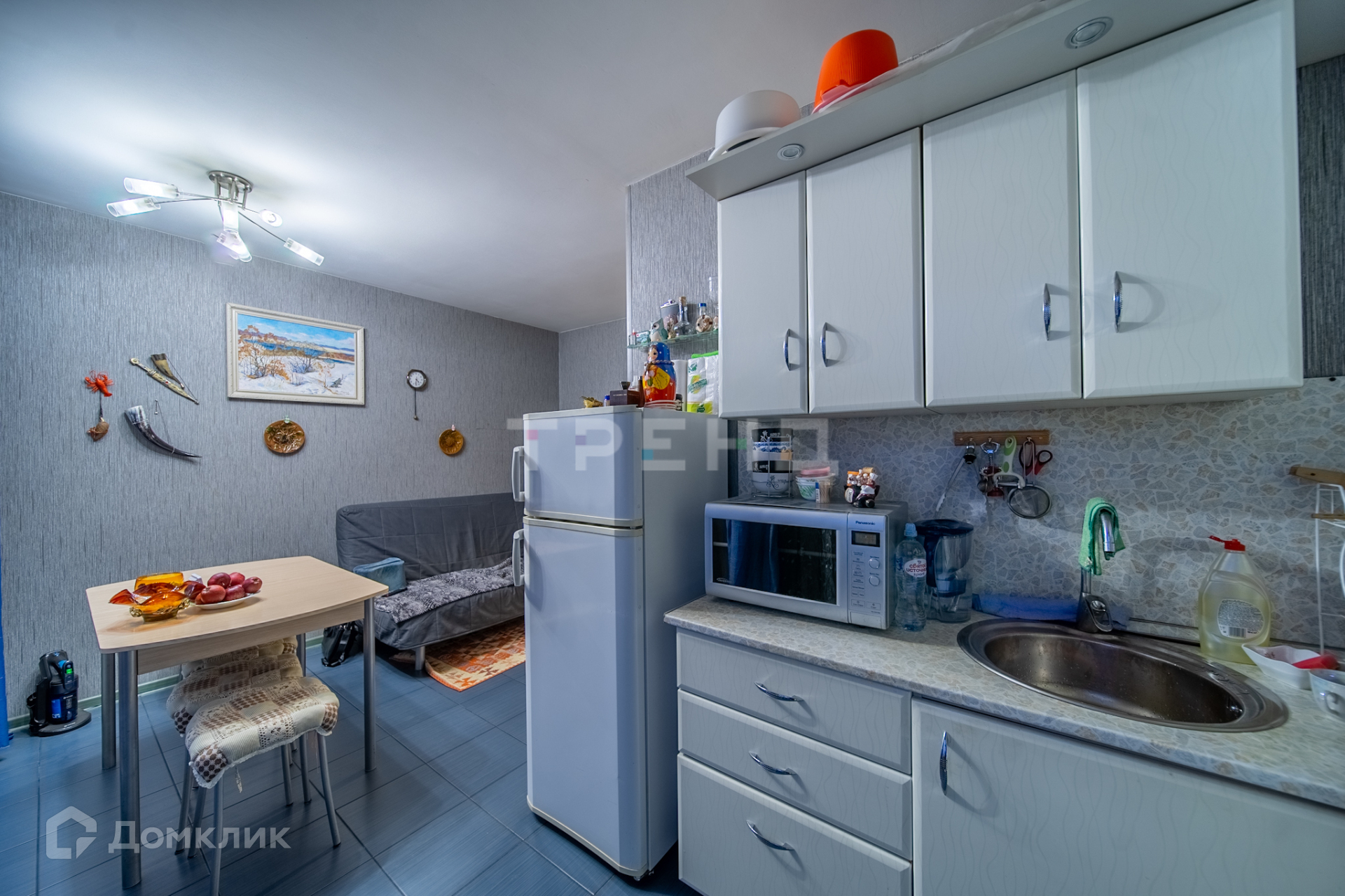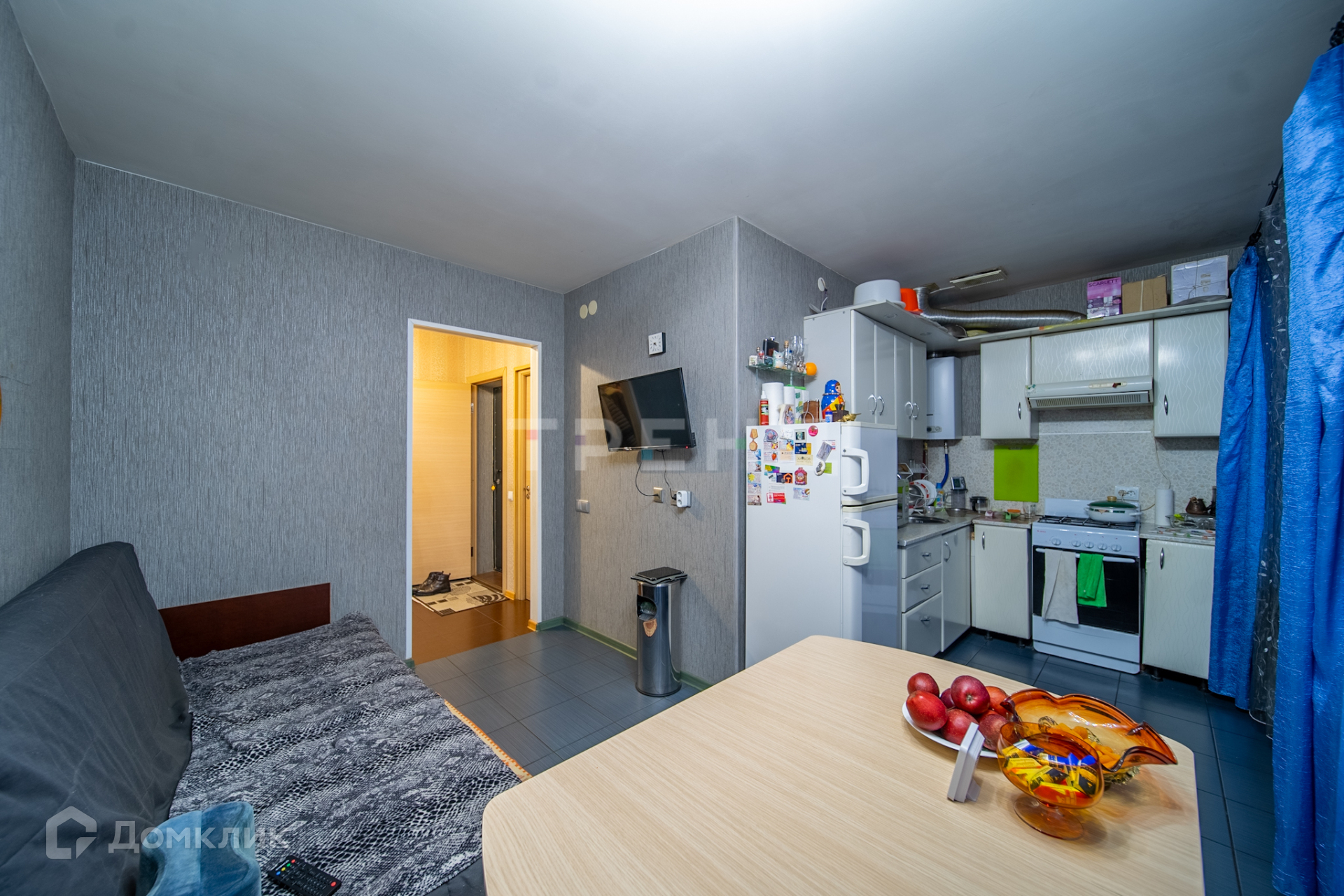 В квартире остается вся мебель и техника (кроме 1 дивана), что позволит новым владельцам сразу заселиться и наслаждаться комфортом. В комнате установлен вместительный шкаф-купе для хранения одежды и личных вещей. Кухня оборудована гарнитуром с бытовой техникой - газовой плитой, духовым шкафом, вытяжкой и холодильником.