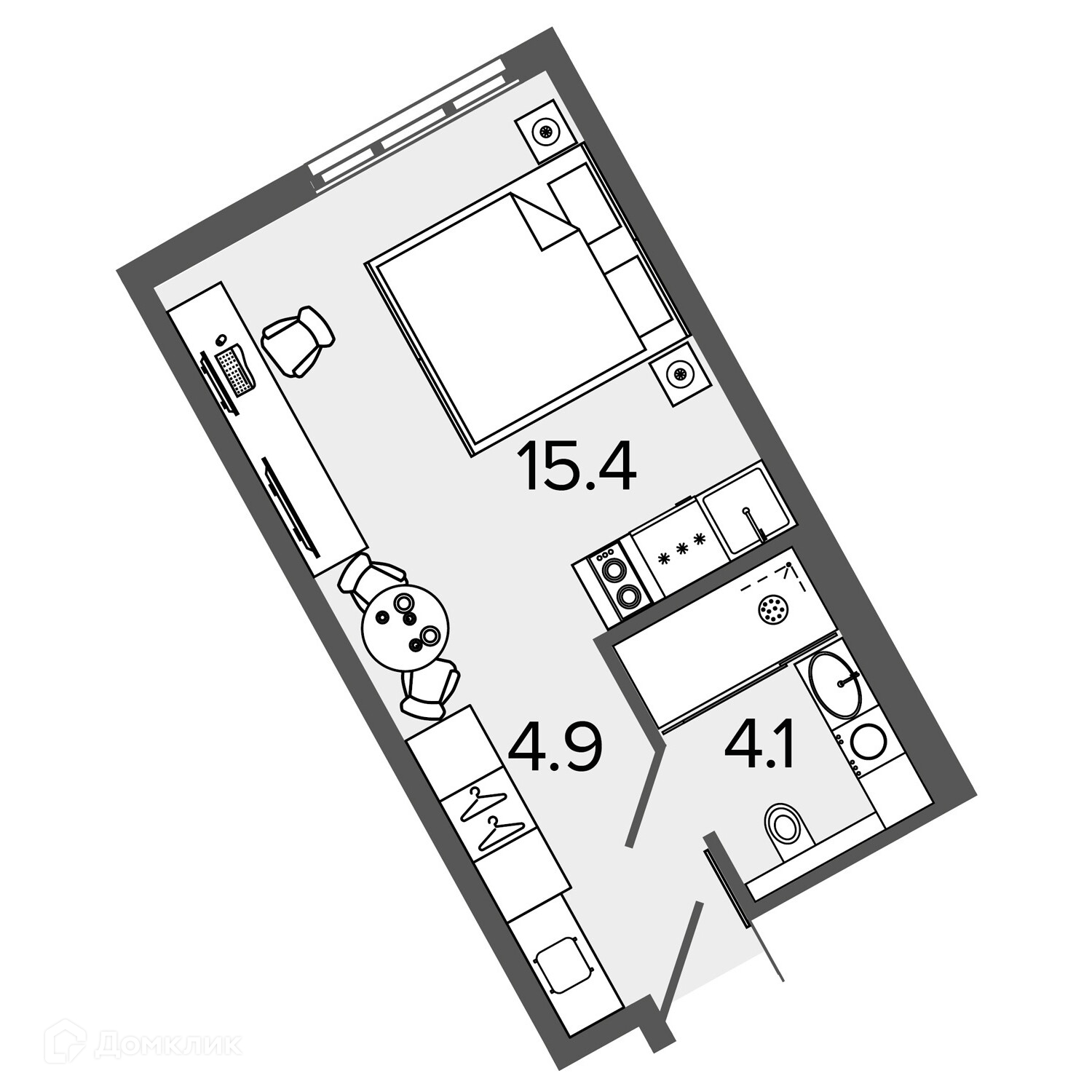 Жилая площадь 15.4 м2