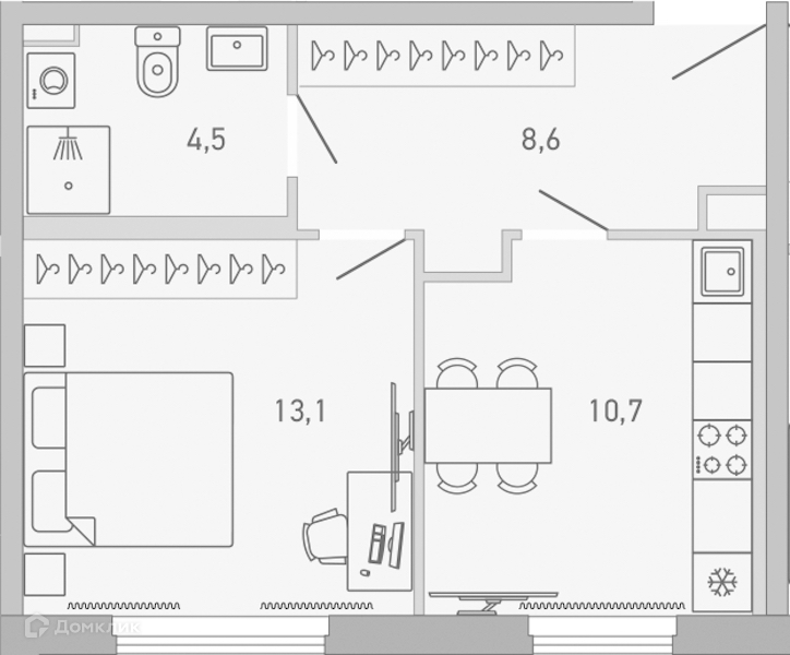 Жилая площадь 13.1 м2