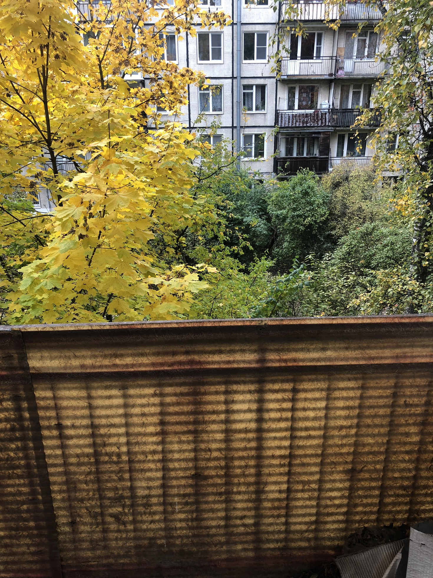 Окна выходят в зеленый двор.