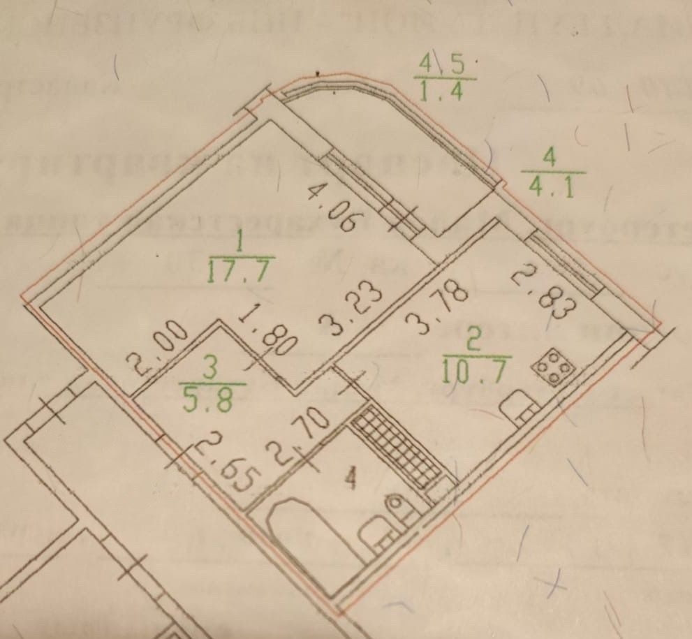 Общая площадь 38.3 м2