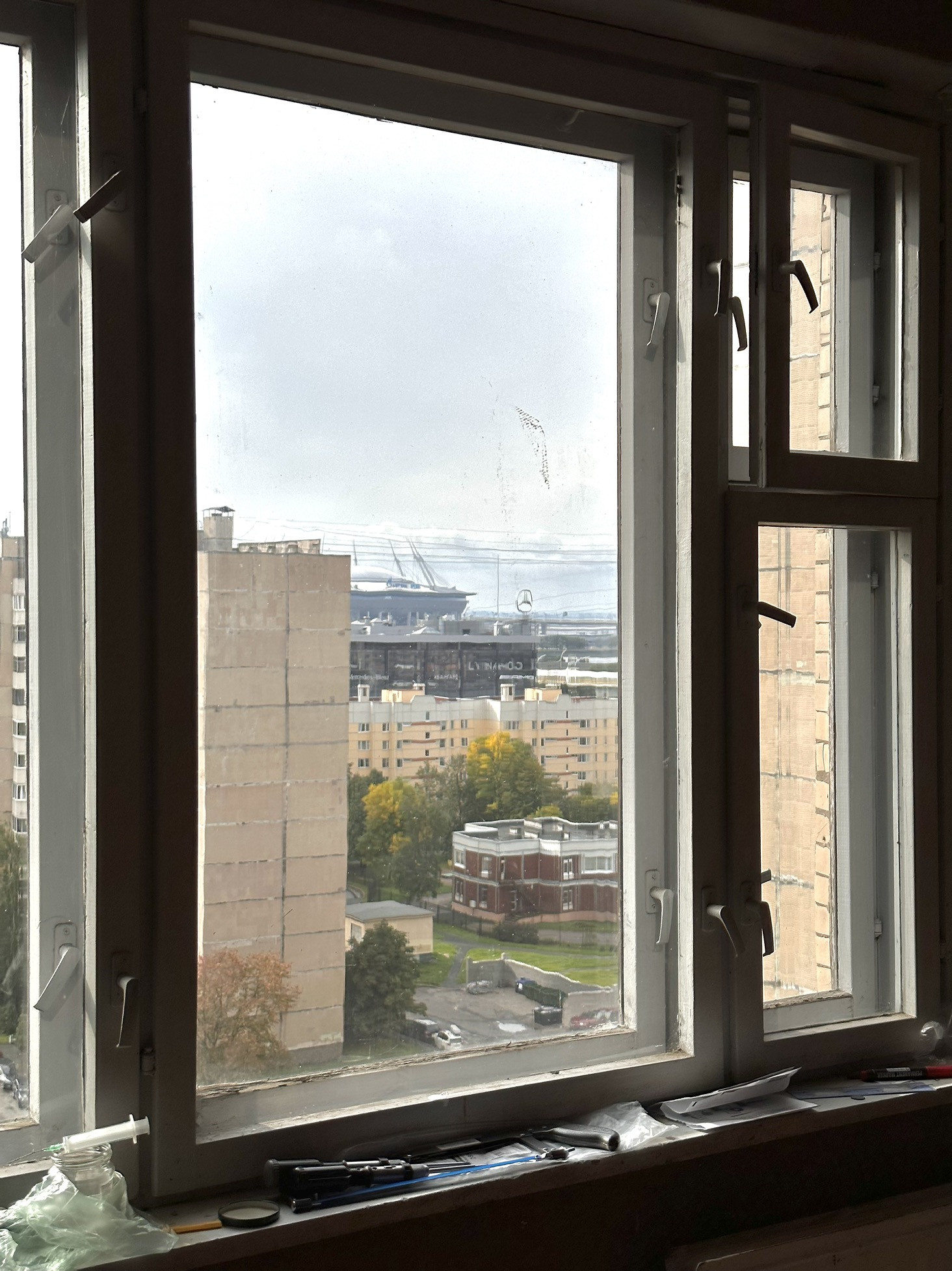 Из окон открывается классный вид на город и Газпром аренду, в хорошую погоду видно даже финский залив .
