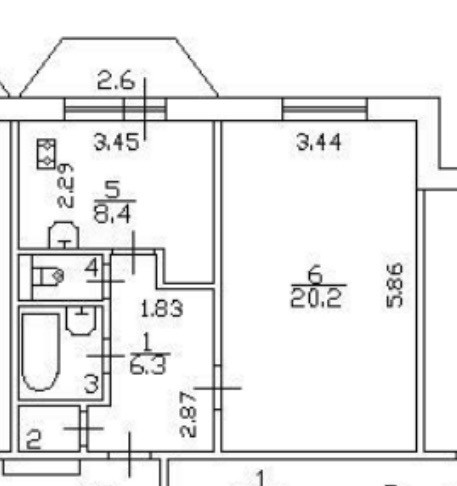 Жилая площадь 20.2 м2