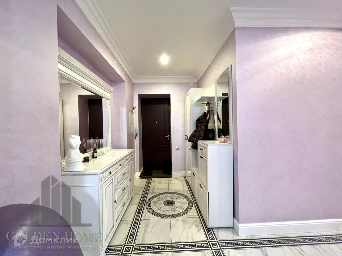 Большая прихожая оснащена элитной мебелью, установлен теплый пол. Вместительная гардеробная.