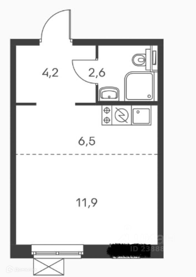 Арт. 54448904 Продается очень светлая просторная студия в развитом районе!