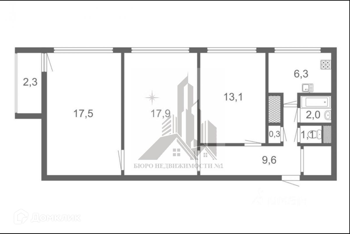 СВЕТЛАЯ квартира с УНИКАЛЬНОЙ планировкой: ТРИ ИЗОЛИРОВАННЫЕ комнаты: 17.5 м2 с выходом на застекленный балкон(2.3 м2) и 17.9 и 13.1 м2