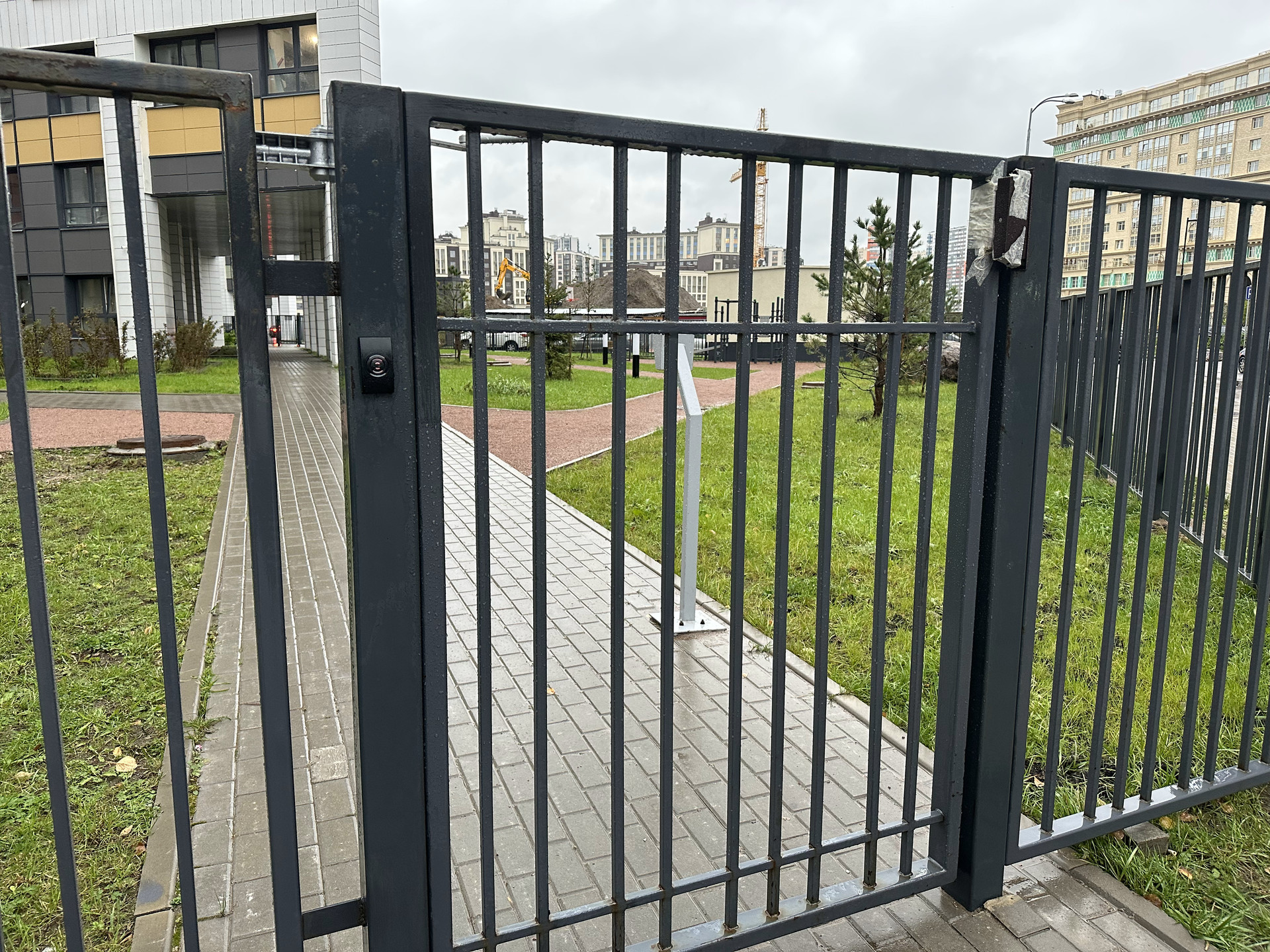 - ограждение  по периметру ЖК - металлический забор с калитками.