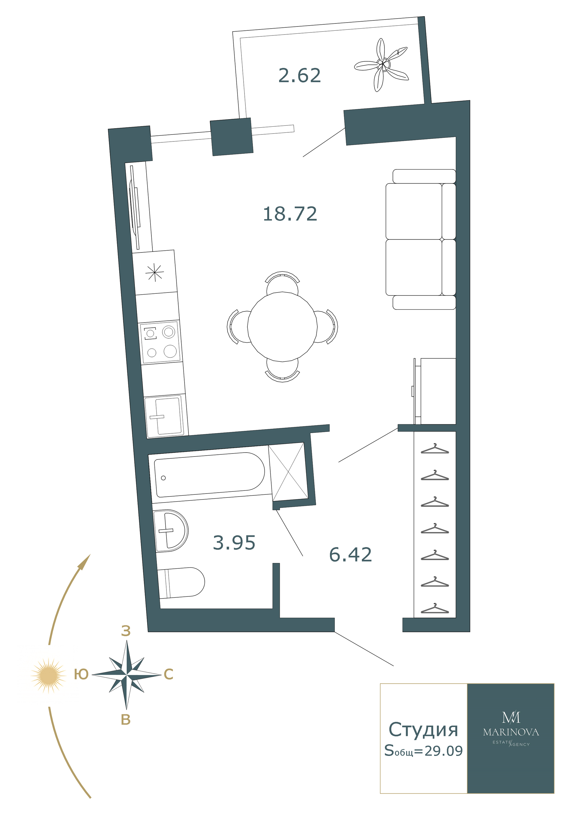 Общая площадь 29.09 м2